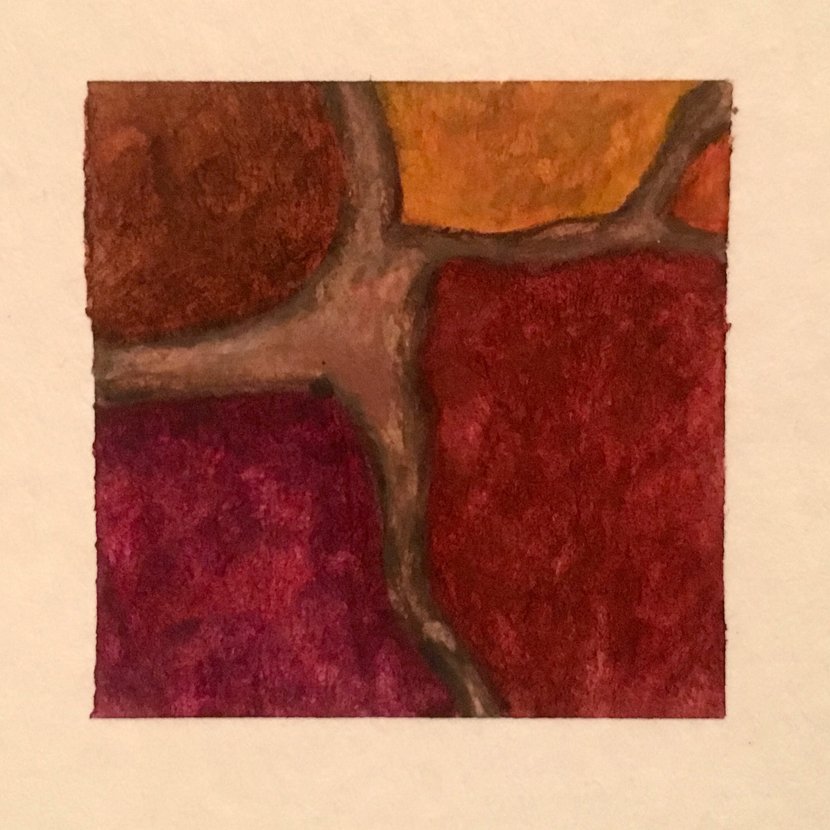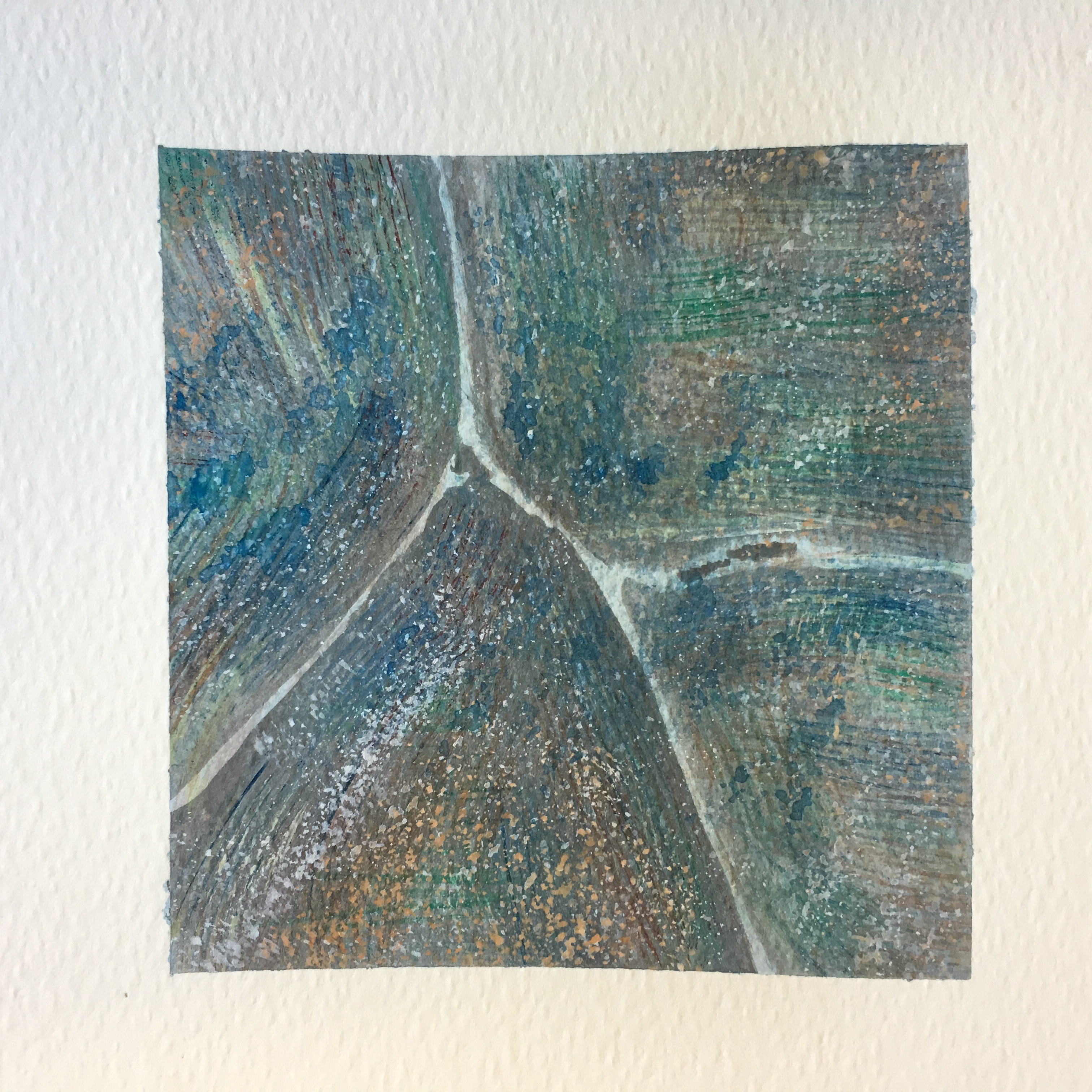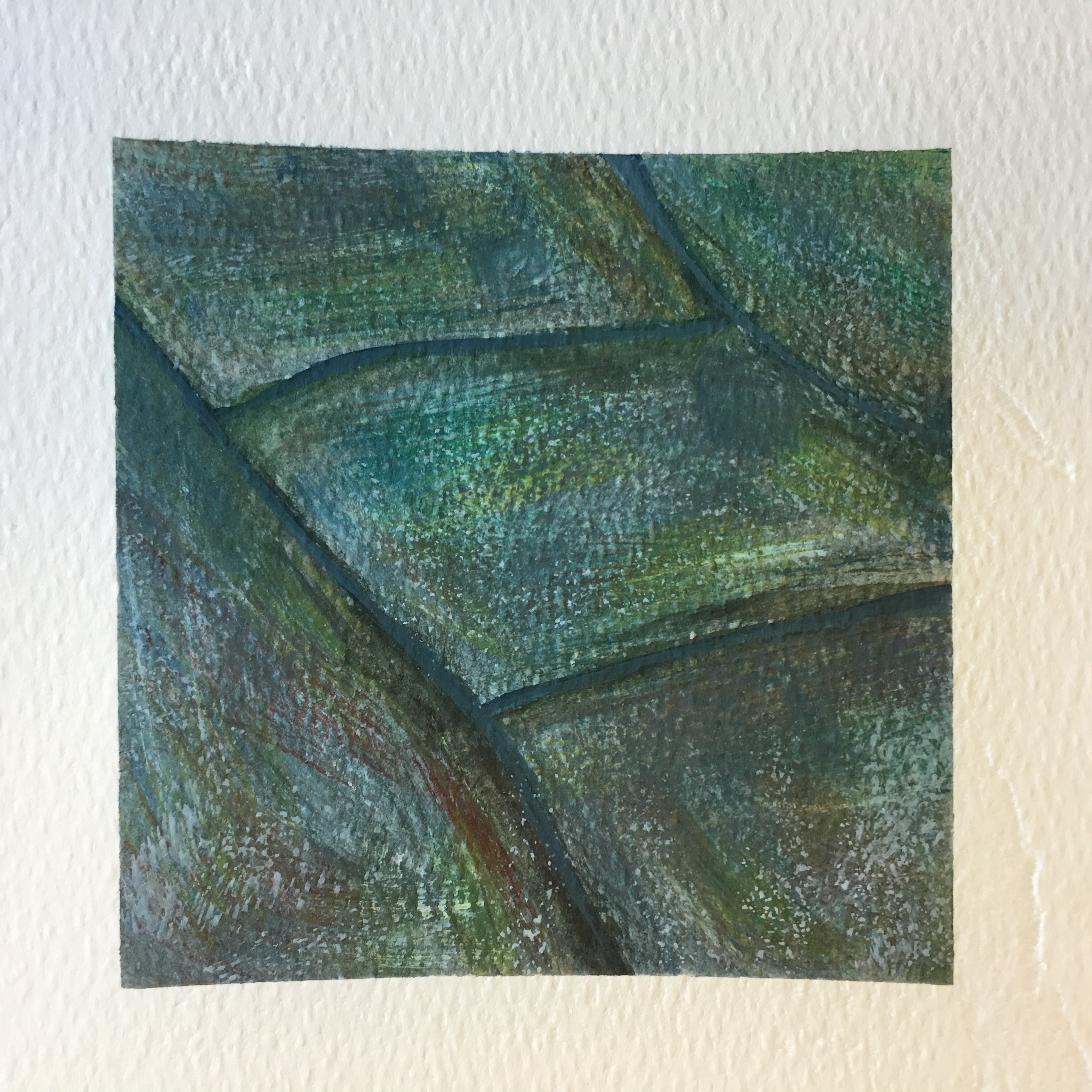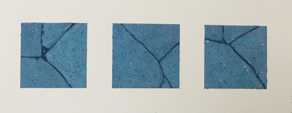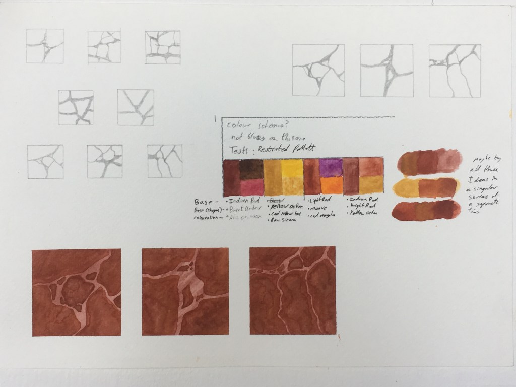Up until this point in my university career my works had been getting gradually larger. Whilst i enjoyed the bigger format i thought it was time to attempt to scale down my works in order to gain a better sense of control over them. my subject matter has also changed lately, from abstractions based off seascapes or large landscapes to smaller compositions primarily based of cracked paving stones and other broken segments of the Welsh cityscape.